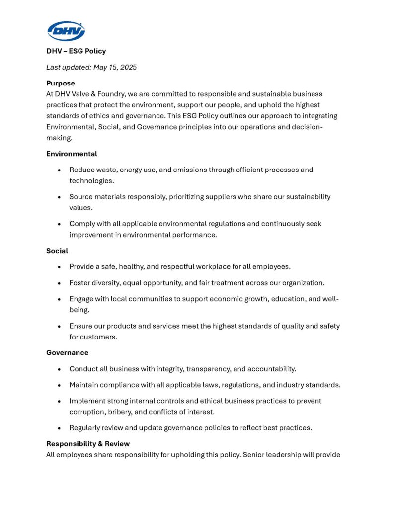 dHV Sustainability Policy